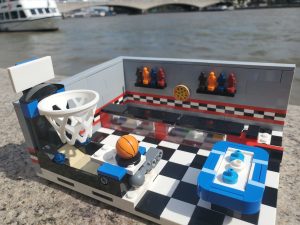 I think this has got to be one of my Favourite Parts from Freddy Fazbear’s, and this definitely contrasts the main theme of FNAF. There’s the Prize Corner which has a red and black counter with some windows so you can see the Prizes that you can win, a Pizza on the wall for some decoration and there’s some of the Micro Figures which represent plushies of the Animatronics. For the Games, there’s the Basketball Arcade Game which has a function where you can launch the ball and try and get it into the hoop, and for the other game, it’s an Air Hockey Table with some pieces that look similar to Pucks.